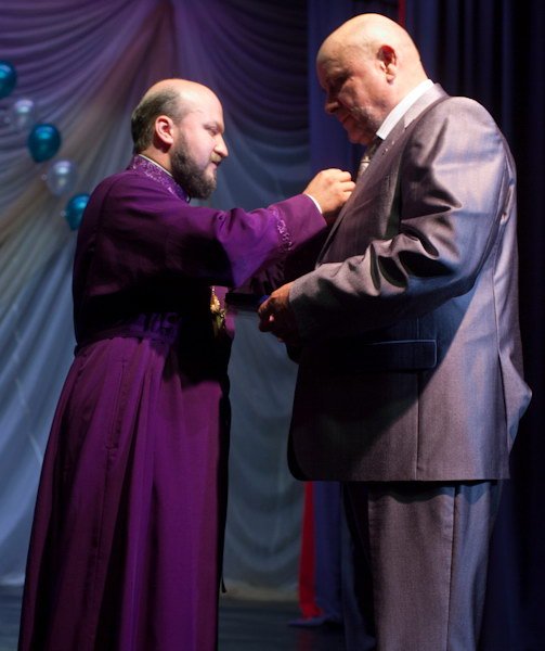 От лица духовенства Орехово-Зуевского округа руководство и сотрудников предприятия поздравил благочинный округа протоиерей Андрей Коробков, и, в благословение за труды, вручил генеральному директору завода «Респиратор» А. А. Брызгалину медаль Московской епархии «За жертвенные труды» II степени.