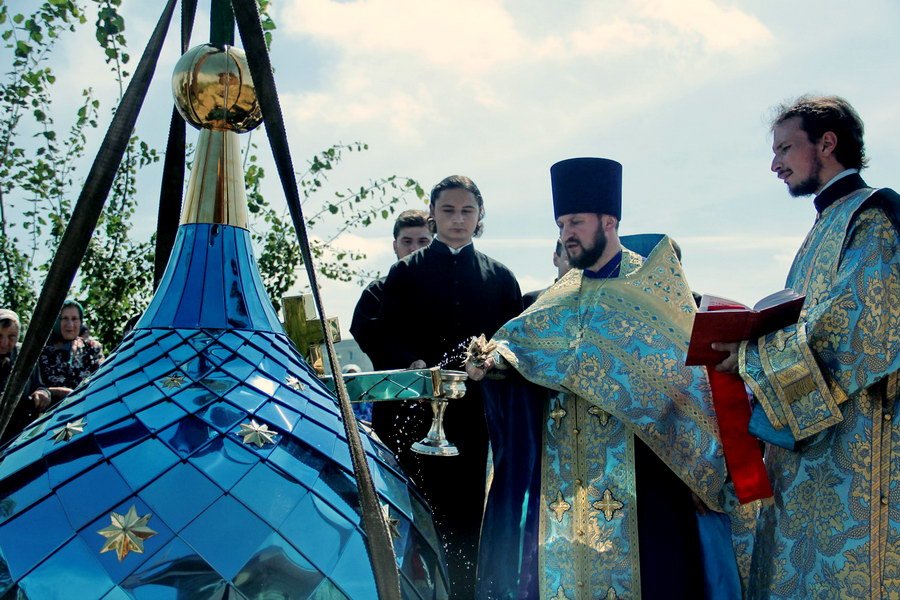Освящение купольного креста в деревне Новое