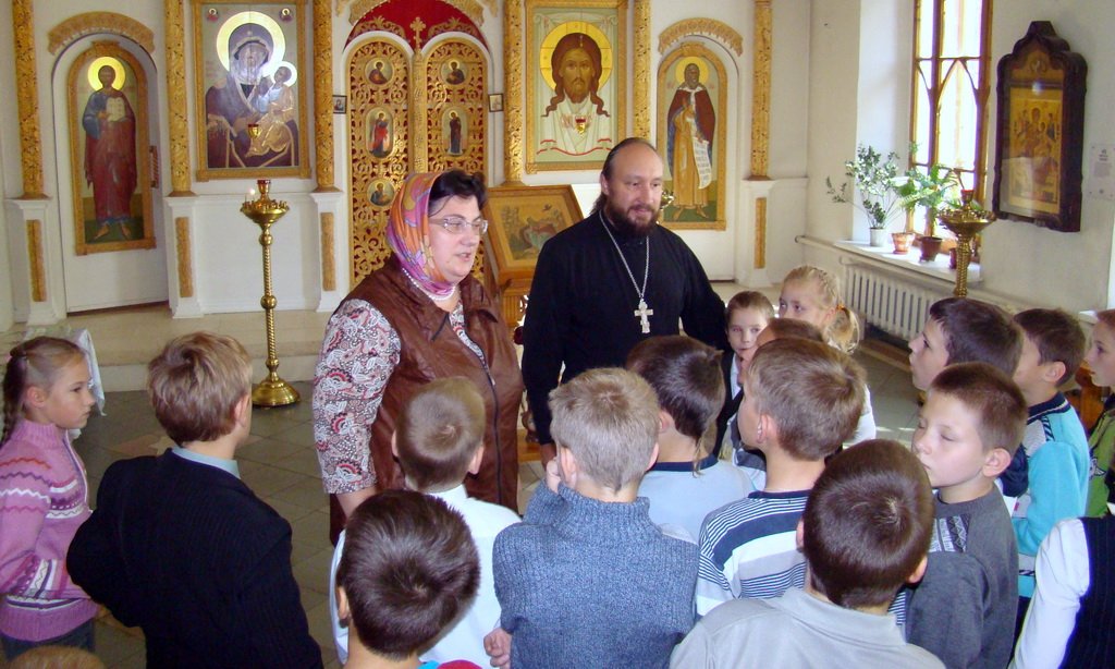 31 октября клирик Вознесенского храма г. Электросталь священник Вячеслав Фролов привез 17 учеников 4–5 классов из специальной коррекционной школы-интерната VII–VIII вида в Покровско-Васильевский мужской монастырь г. Павловского Посада на открытый урок по «Основам православной культуры». Инок Сергий (Марченко) рассказал ребятам об истории монастыря, о том, что стало с ним в советское время, рассказал житие святого праведного Василия Павло-Посадского, мощи которого покоятся в монастыре.