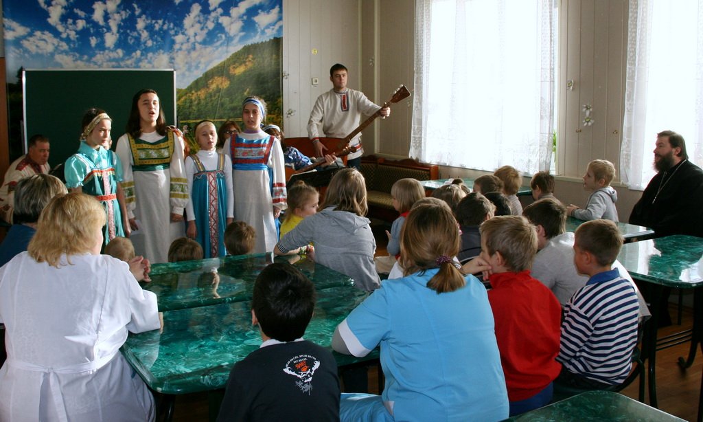 5 ноября воспитанников Ногинского социального приюта для детей и подростков в поселке Обухово посетил вокально-инструментальный ансамбль «Красно солнышко» вместе со священником Александром Лупановым, клириком Богоявленского собора и протоиереем Сергием Решетняков, настоятелем Петро-Павловской церкви пос. Обухово. Дети не только слушали, но и активно участвовали в концерте, им было предложено самим поиграть на народных инструментах коллектива. После концерта батюшки не только побеседовали и поиграли с детьми, но и подарили им подарки и сделали памятную фотографию. Затем священники поехали в Ногинск, где их ждали дети специальной коррекционной общеобразовательной школы-интерната. Перед выступлением священник Александр Лупанов рассказал ребятам о Казанской иконе Божией Матери, а Алла Ивановна Сидоренко, руководитель вокально-инструментального ансамбля «Красно солнышко», познакомила воспитанников с музыкальными инструментами.