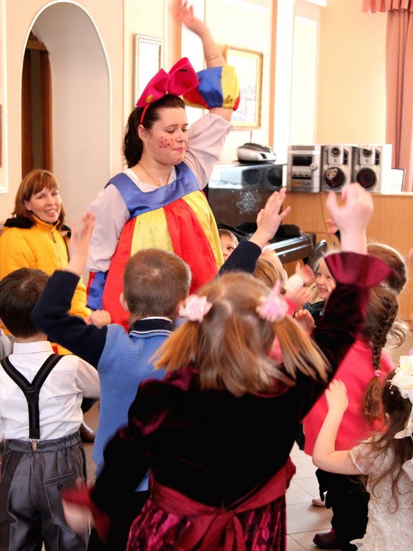 Во время проведения веселых стартов в актовом зале была проведена программа для самых маленьких с участием клоунов.