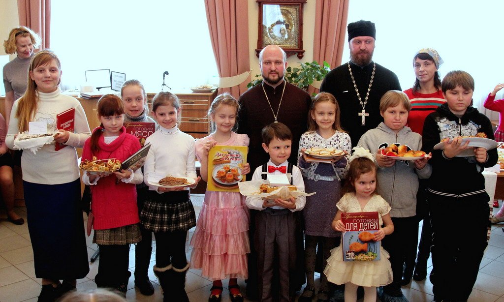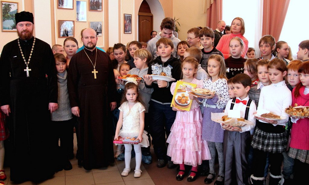 Дети и взрослые весело провели время: угощались блинами с чаем, участвовали в различных конкурсах и викторинах с призами и подарками, играли на свежем воздухе. На прощание дети воскресной школы подарили гостям гостинцы.