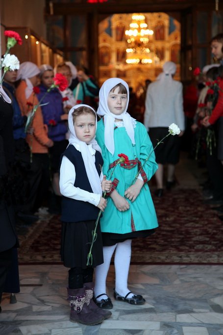 На паперти Владыку архиепископа встречали с цветами ученики ногинской Православной гимназии имени сщмч. Константина Богородского и электростальской — имени прп. Андрея Рублева. По прибытии архиепископа Григория приветствовали глава Ногинского района