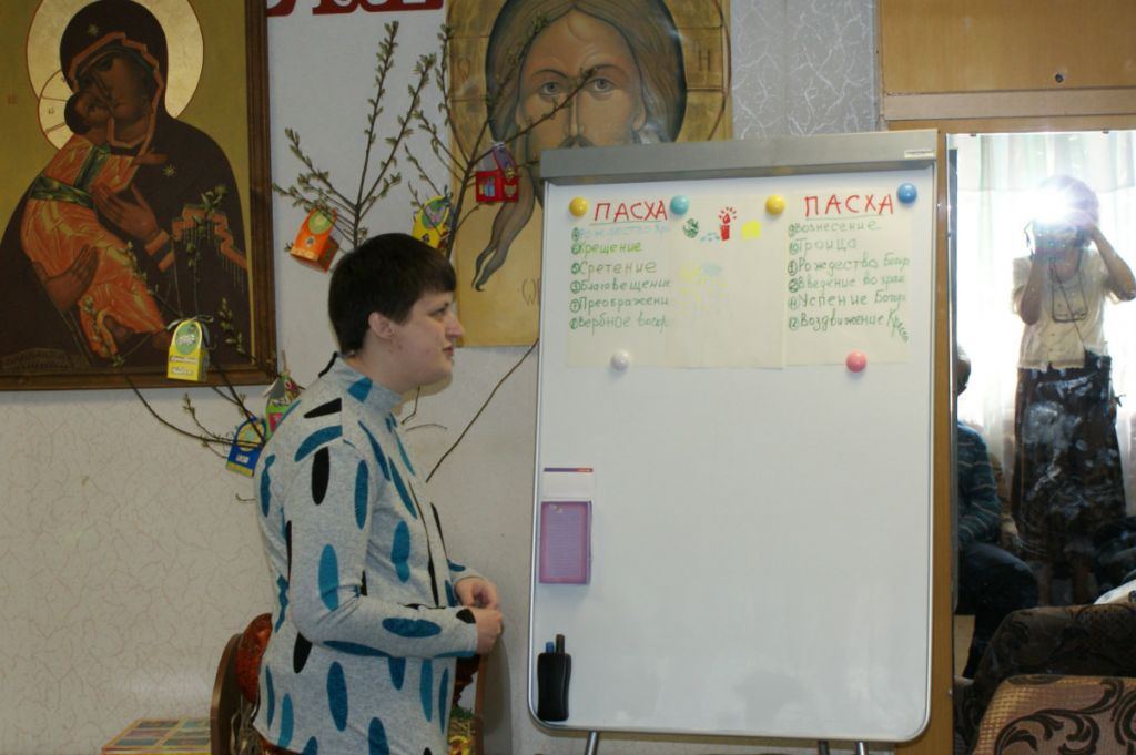 13 мая в обществе людей с ограниченными возможностями «Милосердие-Радость» г. Черноголовка прошло праздничное занятие, посвященное Пасхе. Пока учителя-волонтеры из Христорождественского храма с. Ямкино украшали зал поделками, сделанными руками ребят, сами учащиеся приняли участие в конкурсе «А ты знаешь?» Эта игра-викторина была проведена для закрепления знаний по Закону Божьему.