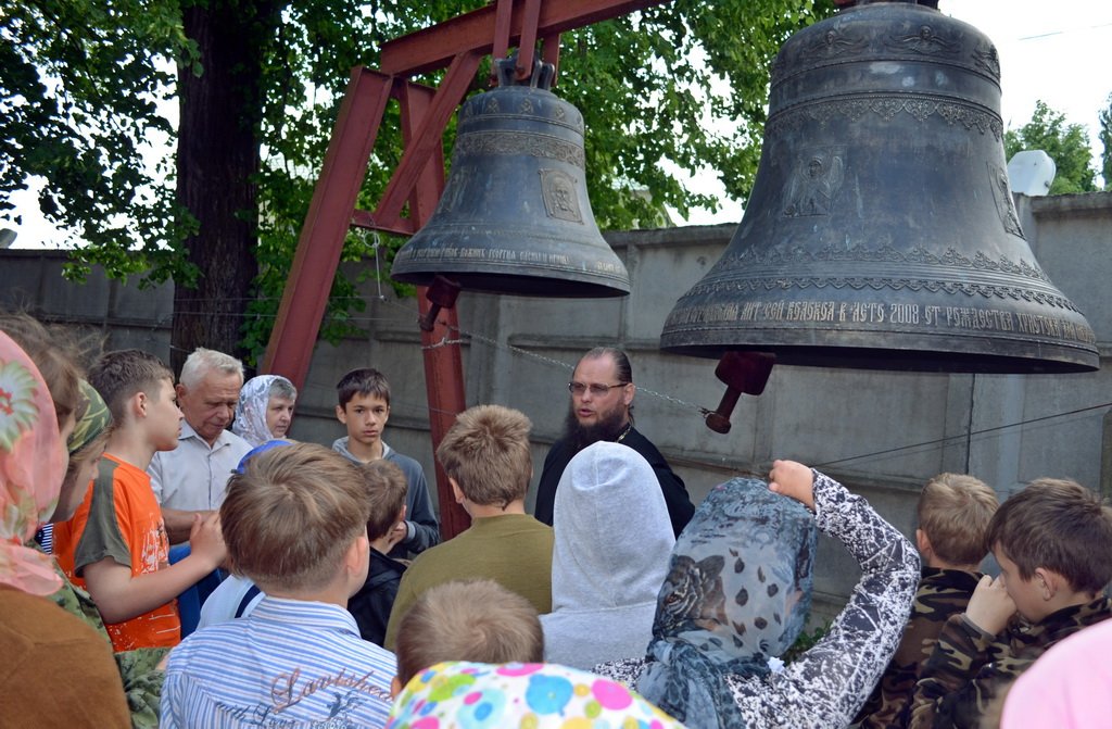 Переночевав, наутро все участники похода пошли в монастырь. Дорога перед монастырем резко забирает вверх и упирается в очень высокую колокольню, которая царит над всей окрестностью. Отстояли службу и молебен, наелись просфор, которые щедро давали всем желающим. Потом была беседа с игуменом обители отцом Евмением (Лагутиным) и экскурсия по монастырю.