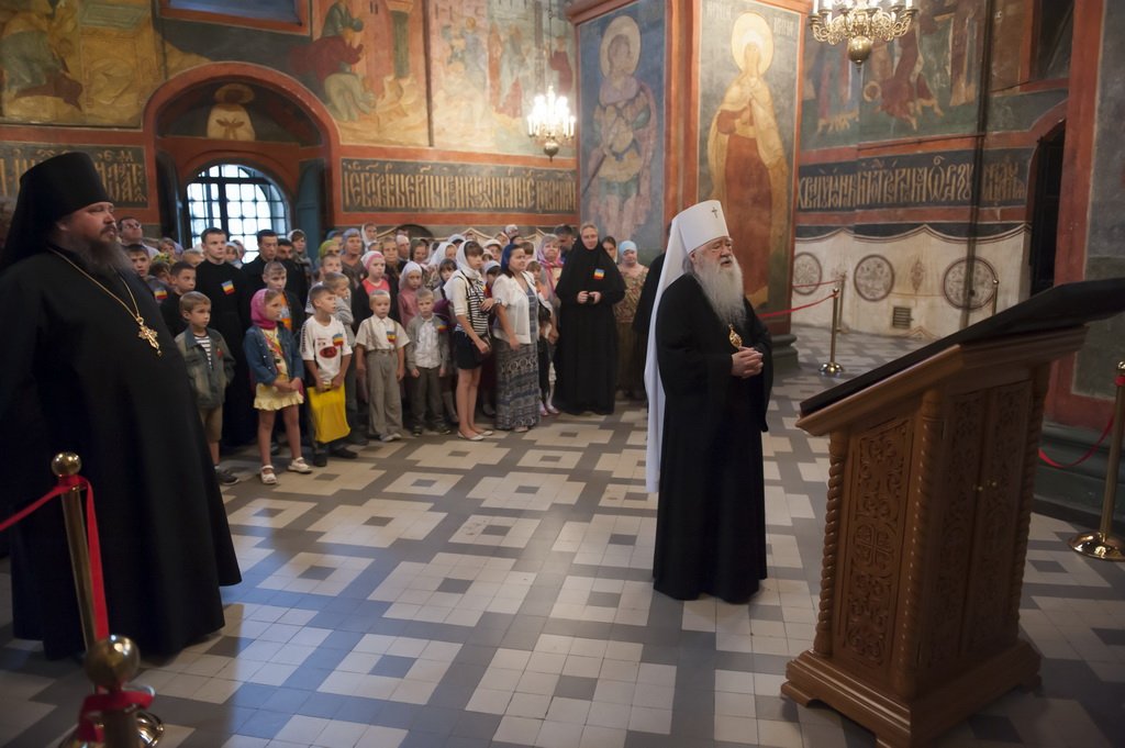 В восемь часов утра юных гостей во вратах святой обители встретил митрополит Ювеналий. Затем в древнем Смоленском соборе Владыка митрополит преподал свое архипастырское благословение и рассказал о празднике в Зарайске, куда вернулась древняя икона святителя Николая. Каждому паломнику Владыка подарил по иконке, расспросил о летнем отдыхе, а затем совершил краткий молебен о здравии и спасении всех, молившихся в этот момент перед древним Смоленским образом Божией Матери. В ответ «никитята» преподнесли Владыке мед, которым они запаслись во время своего летнего отдыха на гостеприимной Рязанской земле.