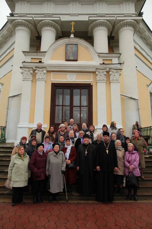 Сначала ветераны побывали в Сергиевском храме п. Трубино, где отца благочинного и гостей встречал настоятель храма священник Антоний Сенько, он рассказал историю создания храма, познакомил с храмовыми святынями.