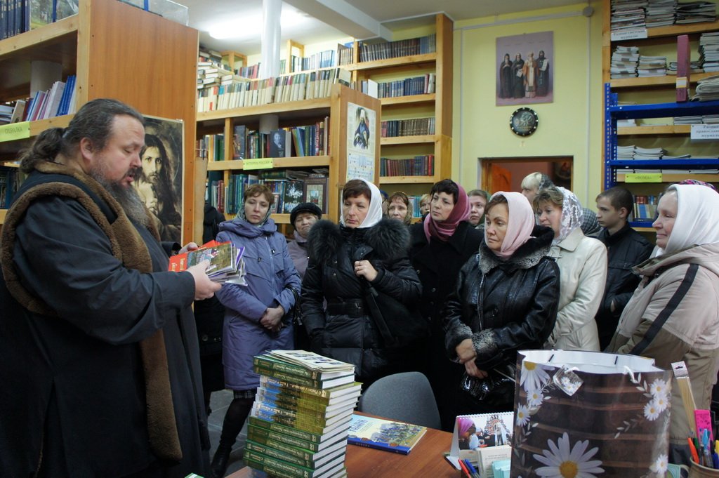 Педагоги посетили отдельно стоящее здание библиотеки, вместившее в себя высокие стеллажи, заполненные различного рода литературой: православной и светской, детской и взрослой, исторической и художественной. Настоятель вручил всем книги поэта В. Степанова и брошюрки изданные Никитским храмом. Затем гости отобедали в приходской трапезной и посетили школу детского творчества «Шмель».
