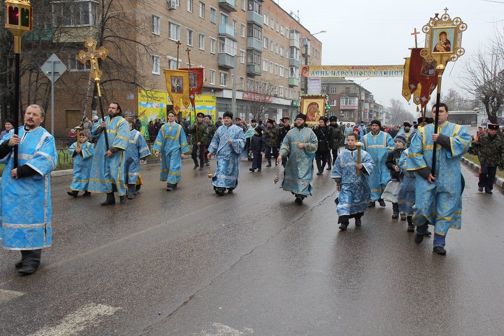 4 ноября, в день празднования Казанской иконы Божией Матери и Дня народного единства, в Павловском Посаде прошел крестный ход по центральным улицам города от Казанского храма на ул. Павловской до Привокзальной площади, где до революции находилась Никольская церковь при железной дороге. В крестном ходе приняли участие более тысячи жителей города и Павлово-Посадского района, среди них, глава города В. В. Бунин, представители районной и городской администрации. Казанский образ Божией Матери и хоругви несли казаки Павлово-Посадского хуторского казачьего общества. На Привокзальной площади состоялся торжественный молебен, затем к собравшимся с пастырским словом обратился благочинный Павлово-Посадского церковного округа протоиерей Александр Хомяк. Напомнив о событиях 1612 г. и отметив, что традиция проведения крестного хода в этот день восходит к XVII столетию, он сказал также о том, как важно сегодня для русских людей возвращение к благочестивым традициям своих предков. Отец Александр поблагодарил всех за участие в крестном ходе, через которое проявилась их любовь к Богу и Божией Матери, городскую администрацию за помощь в организации крестного хода и лично главу города В. В. Бунина за многолетнюю заботу не только о материальном, но и духовно-нравственном благосостоянии жителей города. С праздником павловопосадцев поздравили также глава города Павловский Посад В. В. Бунин, а от имени главы района руководитель администрации Павлово-Посадского района А. В. Федоров.