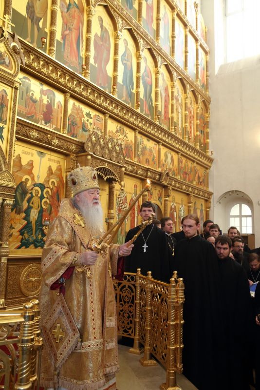 Мне радостно завершать это празднование в Московской епархии среди ревностных священнослужителей, монашествующих, студентов духовной семинарии, которые готовятся нести свет Христовой веры нашему родному народу. Я поздравляю вас и с нашим коломенским праздником, потому что сегодня — день памяти святителя Московского Филарета, который как яркая звезда на небесном небосклоне освещает и просвещает и поныне нашу землю. Я желаю вам жить по вере, иметь благочестие и любовь друг к другу, которая побеждает ненависть, дает силы и приводит нас ко спасению. Причастников и причастниц поздравляю с принятием Святых Христовых Таин, и на всех вас, возлюбленные о Господе, призываю Божие благословение!».