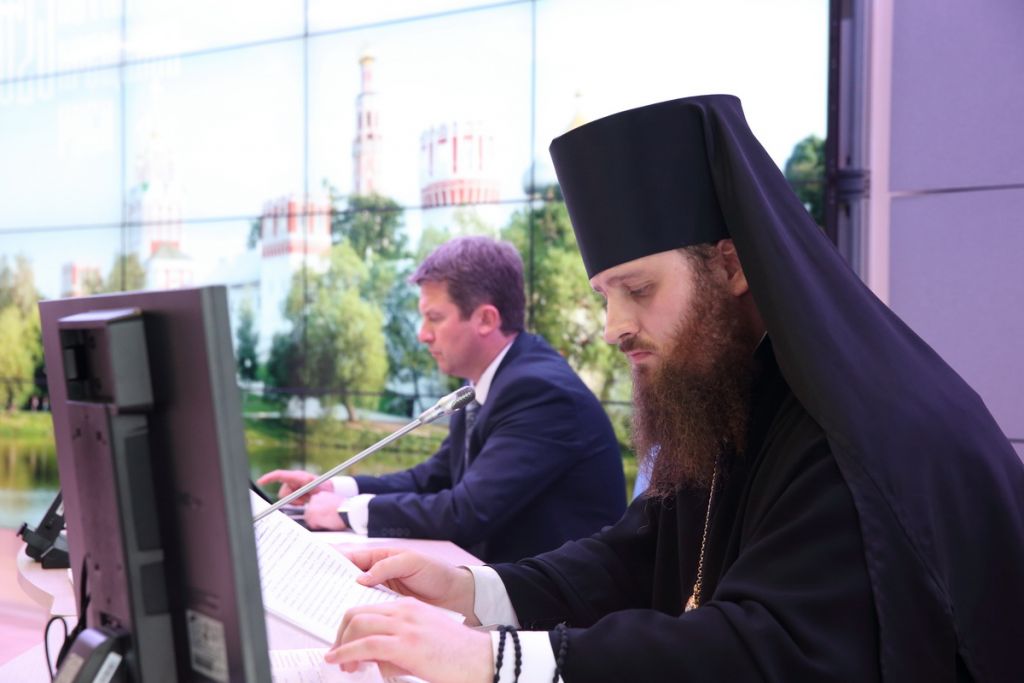 Совсем недавно на Валдайском форуме наш президент Владимир Владимирович Путин обратил особое внимание на необходимость поиска новых методов воспитания подрастающего поколения, путей их патриотического воспитания, нахождения Российской идентичности. Я думаю, что сегодняшний день, и конференция, и Ваше служение, Владыка, и творчество наших детей дало ответ на этот вопрос. Любовь к своей родине, уважение к своей семье, знание своих традиций, изучение православной культуры — все это идет по дороге к храму. Я очень рада, что имею возможность по поручению губернатора Московской области Андрея Юрьевича Воробьева выразить вам слова искренней благодарности, уважаемый Владыка, и вручить Вам эти цветы и поздравить всех сегодня здесь присутствующих с замечательным днем. С праздником!».