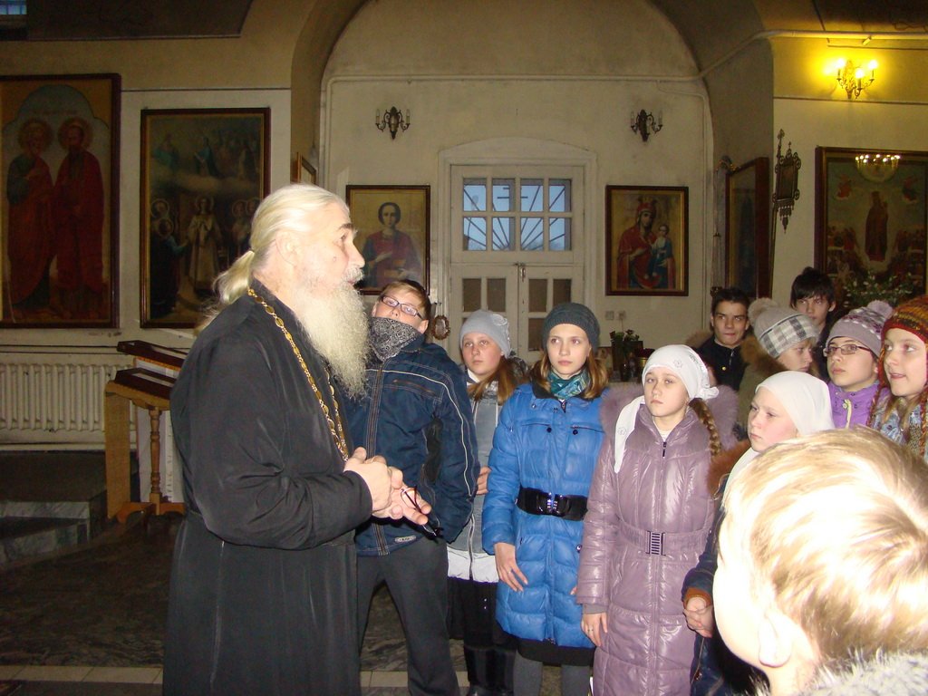 В следующем храме настоятель протоиерей Алексий Смирнов поведал гимназистам о священномученике диаконе Сергии Астахове, который в 1937 году был арестован по нелепому стандартному в те времена обвинению в «контрреволюционной деятельности» и приговорен к 8 годам