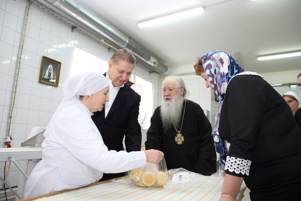 После трапезы владыка с гостями посетил просфорный цех, где пообщался с сотрудниками предприятия.