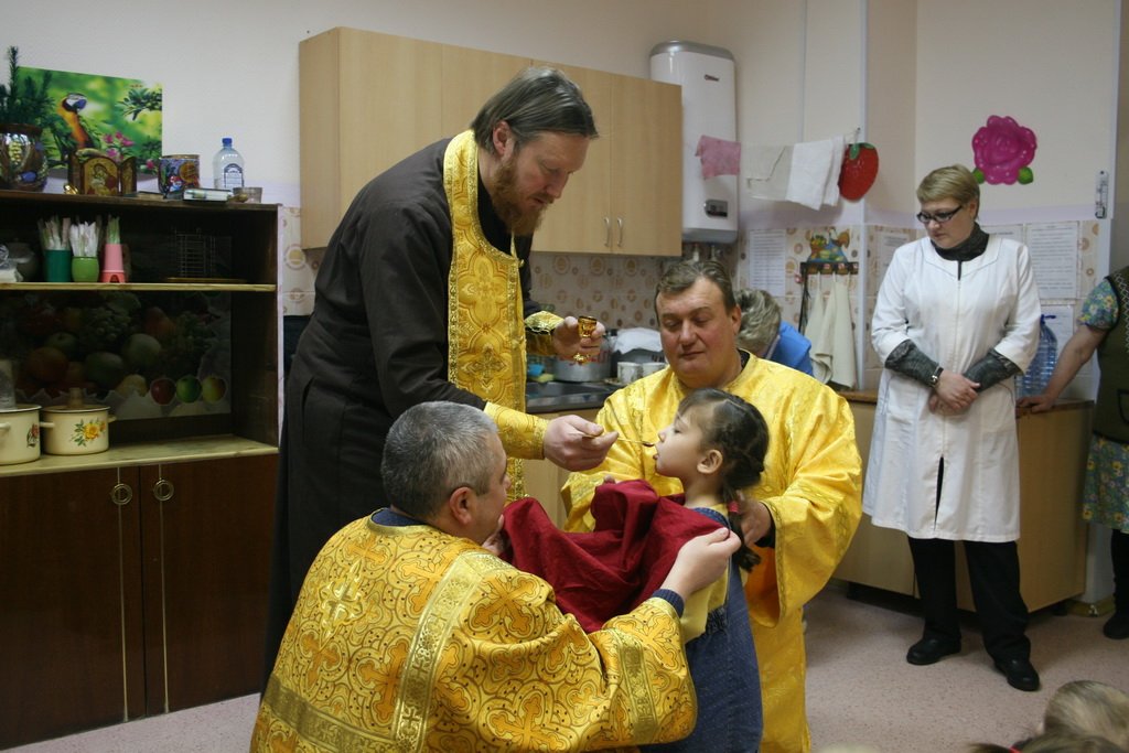 28 января в Орехово-Зуевском дошкольном туберкулезном санатории, по приглашению руководства, настоятель Успенского храма с. Войнова Гора священник Алексий Демьянов причастил Святых Христовых Тайн воспитанников учреждения. Отец Алексий уже многие годы тесно сотрудничает с означенным лечебно-профилактическим учреждением. Малыши возрастом от 2 до 6 лет, находящиеся здесь, особенно нуждаются в духовной поддержке, т. к. подавляющее большинство из них остались без родителей. Всего в этот день сподобились причащения более 40 детей. После причащения отец Алексий окропил сотрудников и помещения санатория крещенской водой.