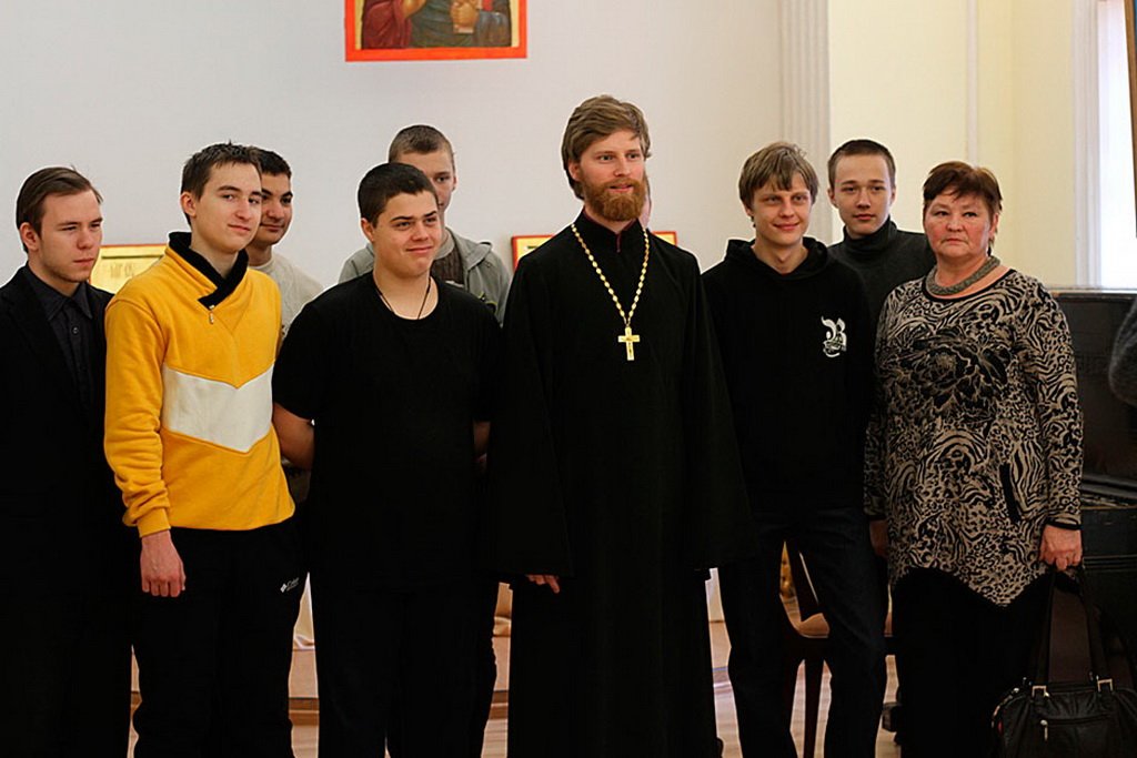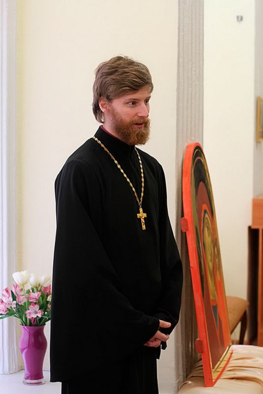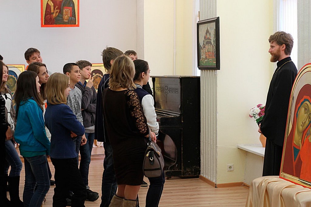 6 февраля в Культурном центре города Фрязино настоятель Державного храма священник Димитрий Поповский провел беседы с учащимися средней школы № 1 и ПТУ на тему «Православная икона», после которой ответил на вопросы ребят.