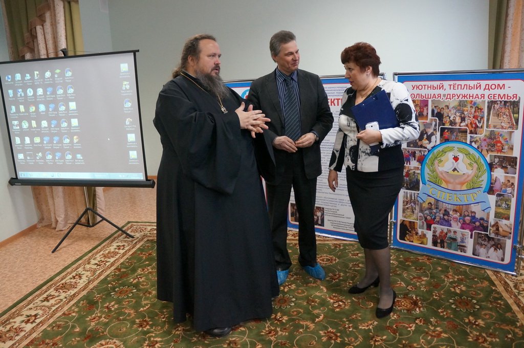 7 февраля в Павлово-Посадском реабилитационном центре для несовершеннолетних «Спектр» прошел «круглый стол» на тему «Работа с несовершеннолетними и семьями, попавшими в трудную жизненную ситуацию», в котором приняли участие начальник Павлово-Посадского управления социальной защиты населения В. И. Кондрашкин, директор реабилитационного центра Г. Д. Малашкина, специалисты и воспитатели «Спектра», игумен Амвросий (Шевчук), священники Алексей Попков и Павел Филиппенко, монашествующие, социальные работники из храмов благочиния. До начала мероприятия Г. Д. Малашкина провела гостей по помещениям центра.