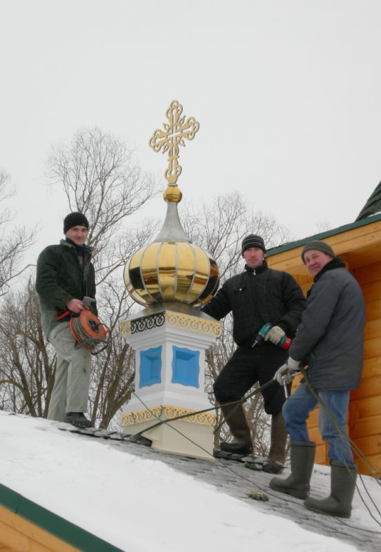 Установка купола и креста над алтарной частью Михаило-Архангелтьского храма в с. Пышлицы Шатурского района