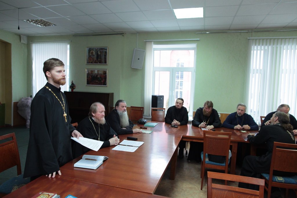 В конце собрания прошел пастырский семинар «Психология в современном мире». На вопросы священнослужителей ответила психолог консультации «Семейное благо» при храме в честь иконы Божией Матери «Живоносный источник» г. Москвы