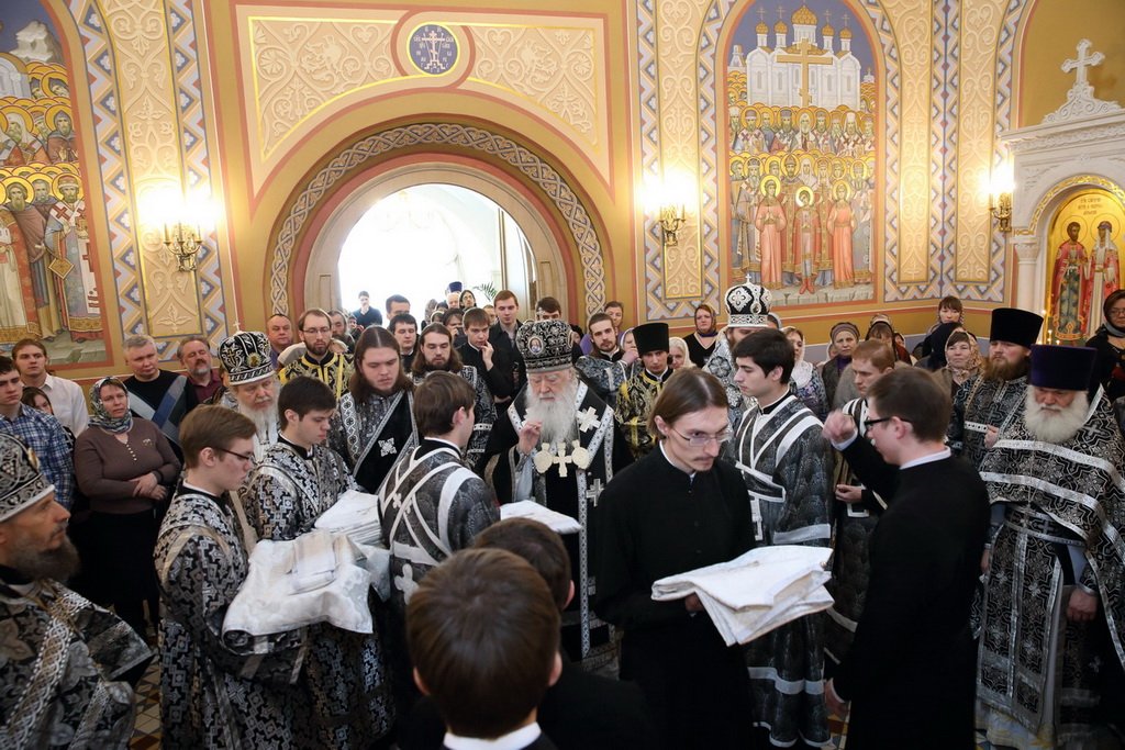 Первую в этом году Литургию Преждеосвященных даров митрополит Ювеналий совершил в Трехсвятительском семинарском храме. Ему сослужили два викарных архиерея: епископ Балашихинский Николай и ректор КПДС епископ Зарайский Константин, а также духовник семинарии, настоятель Успенского кафедрального собора Коломны протоиерей Николай Качанкин, игумены коломенских монастырей Варлаам (Горбунов) и Петр (Дмитриев), благочинные нескольких округов Московской епархии, преподаватели и студенты семинарии в священном сане.