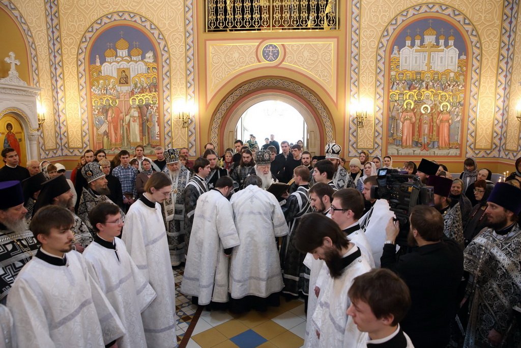 Этот день стал особенно торжественным для многих студентов КПДС: владыка Ювеналий благословил первокурсников на ношение подрясника, а студенты пятого курса были посвящены во чтецов — «первую степень священства», как сказано в чине посвящения. Также Владыка митрополит рукоположил во диакона Вадима Воротова.