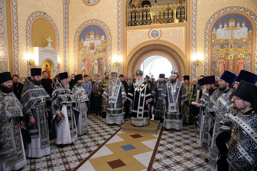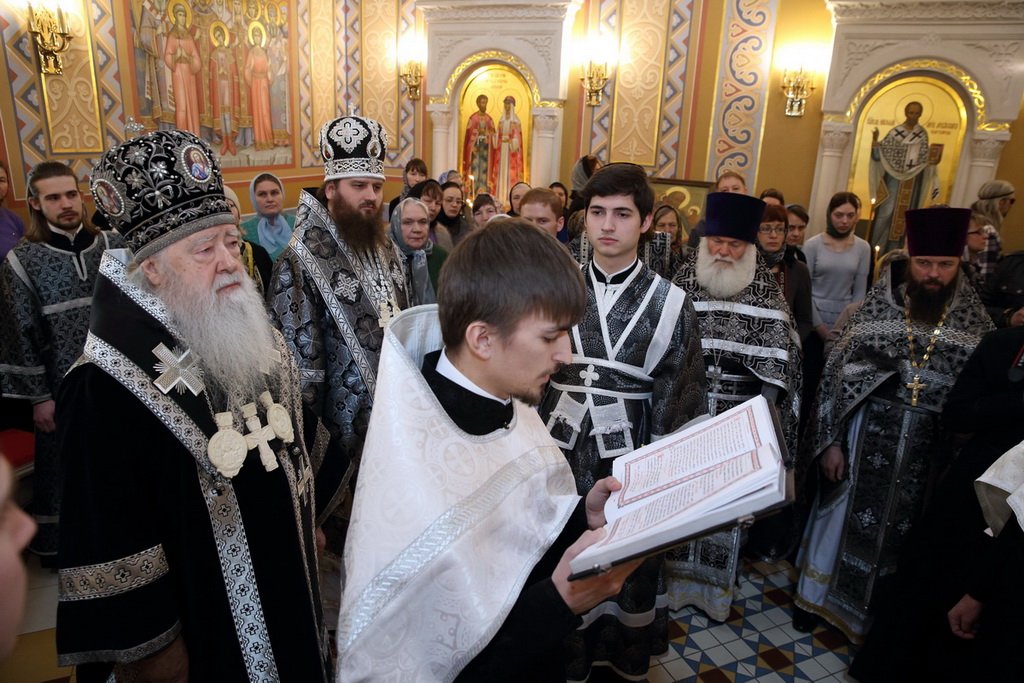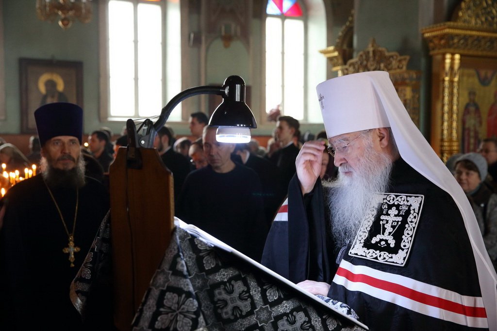 Вечером Владыка совершил в Тихвинском храме на Соборной площади чтение Великого Покаянного канона преподобного Андрея Критского.
