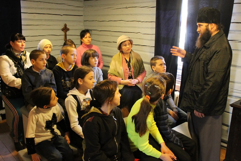 Перед вечерним богослужением в вышеупомянутой библиотеке прошел праздник Дня православной книги для детей, находящихся на социальном патронате в Орехово-Зуевском городском управлении соцзащиты. Член Епархиального отдела по благотворительности и социальному служению, клирик Богородицерождественского собора г. Орехово-Зуево протоиерей Андрей Зозуля тепло встретил ребят, их родителей, патронатных воспитателей и сотрудников соцзащиты. Большинство перешагнули порог этой библиотеки впервые, и знакомство с ней началось с просмотра православных мультипликационных фильмов о преподобном Серафиме Саровском и святых благоверных князе Петре и княгине Февронии. Отец Андрей побеседовал с ребятами о пользе чтения, о внимательном отношении к прочитанному и увиденному. Библиотекарь Наталья Лебедева представила книжный фонд, включающий в себя и детскую художественную литературу. На память о встрече каждый ребенок получил в подарок книгу.