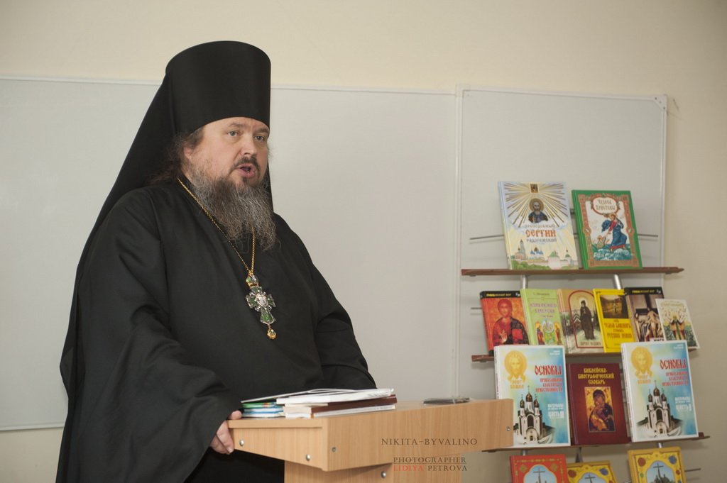 В рамках Дня православной книги настоятель Никитского храма игумен Амвросий (Шевчук) рассказал о новых изданиях и православной периодике, в том числе посвященных преподобному Сергию. Эта литература пополнила фонд школьной библиотеки.