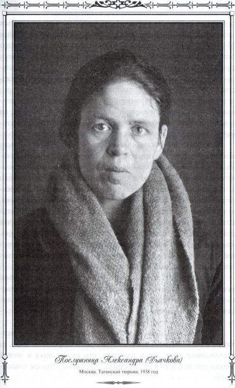 28 февраля 1938 года Александра была арестована. Поводом для ареста, помимо стандартных обвинений в «контрреволюционной» и «антисоветской» деятельности (статья 58–10 УК), было то, что она «в своем помещении устроила молельный дом, который посещают некоторые монахини, устраивает там пение религиозных молитв и громкое чтение Евангелия». Были найдены свидетели, «уличившие» ее в «деятельности, направленной на подрыв мероприятий, проводимых Советской властью». Обвинения эти Александра отвергла за исключением одного: признала, что действительно призывала колхозников посещать церковь и молиться Богу…
