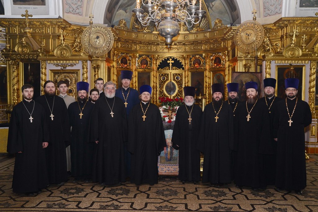 По окончании богослужения состоялось собрание духовенства округа, на котором обсуждалась подготовка к проведению праздничных мероприятий, посвященных 700-летию со дня рождения преподобного Сергия Радонежского, а также подготовка планов по проведению торжеств, посвященных 1000-летию преставления святого равноапостольного великого князя Владимира.