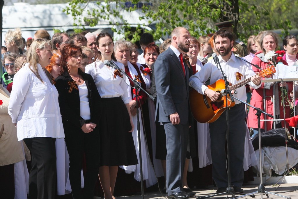 9 мая в селе Макарово возле приходского дома Свято-Никольского храма состоялся праздник посвященный Дню Победы. Уже много лет церковный хор Свято-Никольского храма села Макарово выступает для ветеранов из г. Черноголовки с военными песнями и стихами. В этом году после короткого выступления на официальном городском митинге решили провести концерт в рамках большой программы для прихожан и их детей в Макарово. Около часа звучали песни военных лет под гитарный аккомпанемент Николая Рязанкина.