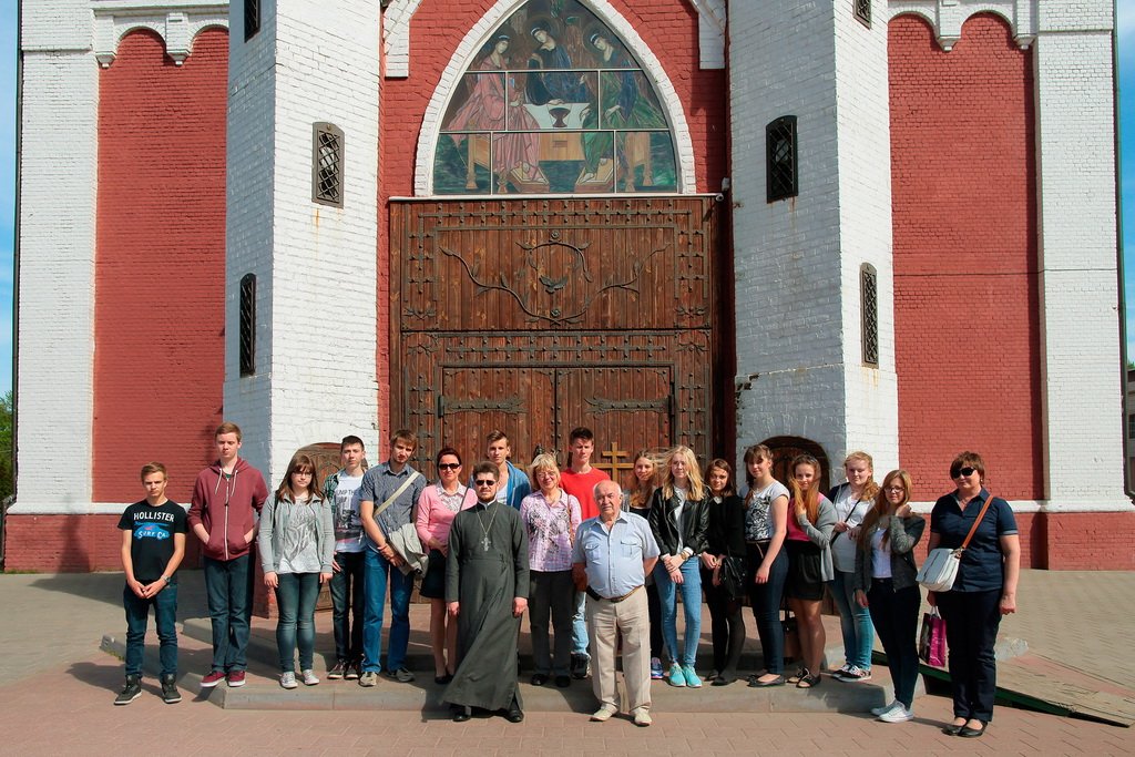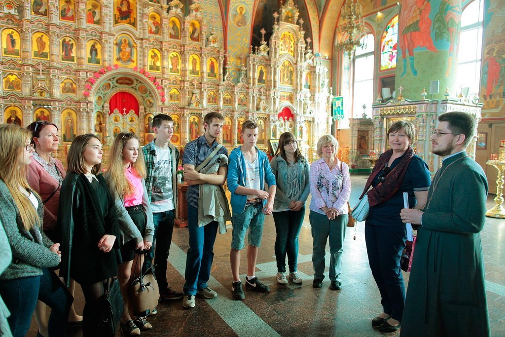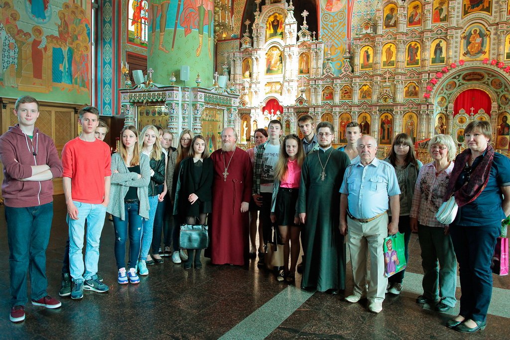 Немецкие школьники с нескрываемым интересом рассматривали роспись собора и уникальный фаянсовый иконостас, затем побывали в нижнем храме в честь мцц. Веры, Надежды, Любови и матери их Софии.