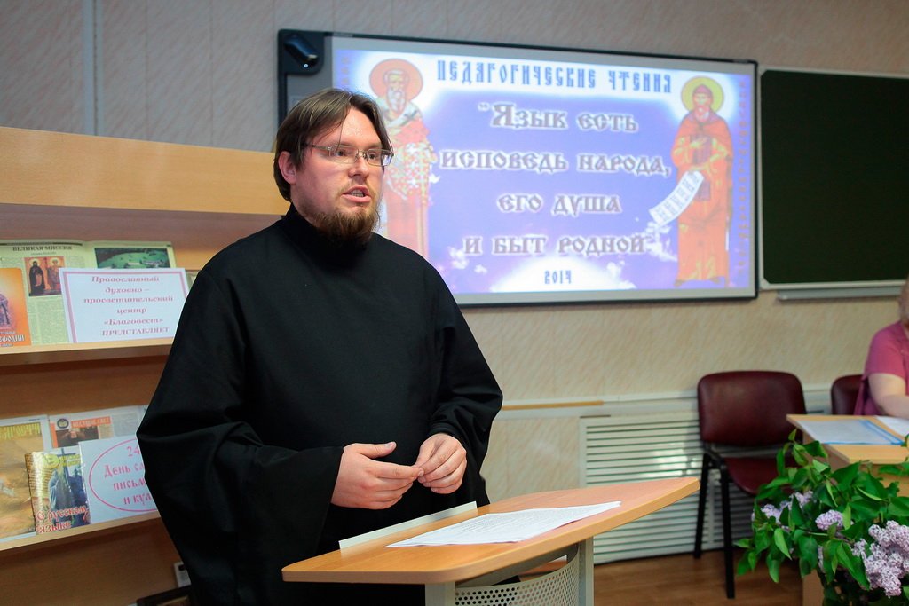 Благочинный церквей Щелковского округа протоиерей Андрей Ковальчук приветствовал собравшихся в зале учителей русского языка и литературы, истории и начальных классов, а также преподавателей «Основ религиозной культуры и светской этики», библиотекарей, воспитателей дошкольных учреждений Щелковского муниципального района, духовенство благочиния.