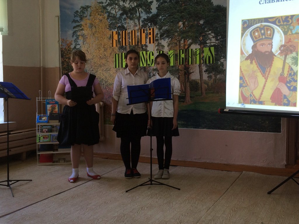 22 мая в Мисцевской школе № 2 состоялся тематический урок, посвященный Дню славянской письменности и культуры. На празднике присутствовал священник Димитрий Смирнов. Он поздравил педагогов и учащихся с праздником и рассказал о его большом значении.