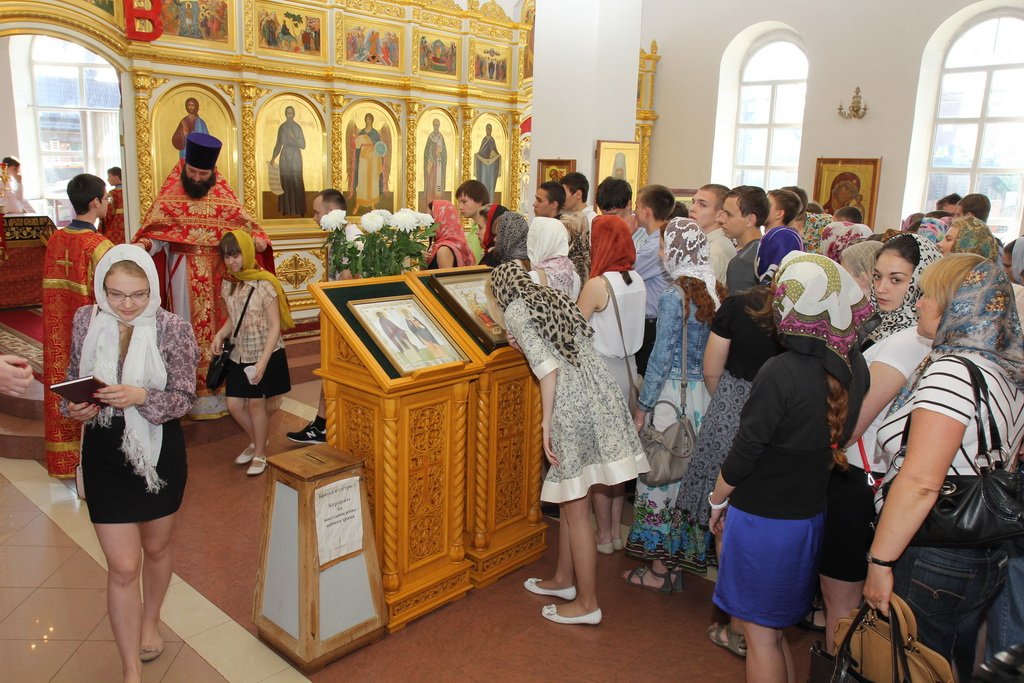 В рамках празднования Дней славянской письменности и культуры 23 мая, накануне дня памяти св. равноапостольных Мефодия и Кирилла, в храме Казанской иконы Божией Матери г. Павловского Посада была совершена Божественная литургия, за которой молились выпускники 11-х классов школ Павлово-Посадского района, а также классные руководители и директора школ; всего около 100 человек. Возглавил богослужение благочинный Павлово-Посадского церковного округа прот. Александр Хомяк, ему сослужили ответственный в благочинии за религиозное образование и катехизацию протоиерей Димитрий Марухин и клирик Казанского храма священник Игорь Крамарук. Отец Александр встретил выпускников во дворе храма, в ходе беседы с выпускниками он рассказал о значении крестного знамения, о том, как принято заходить в православный храм, о правилах поведения в храме, ответил на вопросы молодых людей. Во время службы делались паузы, во время которых священники объясняли смысл происходящих действий и песнопений, их происхождение, раскрывали духовный смысл Божественной литургии. За богослужением пели два детских хора воскресных школ городских приходов. На проповеди клирик Казанского храма священник Игорь Крамарук побеседовал с выпускниками о православном отношении к выбору жизненного пути и выбору будущей профессии. После Божественной литургии был совершен водосвятный молебен святым Кириллу и Мефодию.