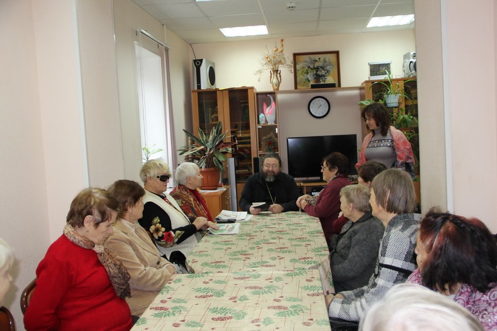 22 октября в Ногинском отделении дневного пребывания центра социального обслуживания граждан пожилого возраста и инвалидов начались евангельские чтения. Протоиерей Игорь Гагарин рассказал слушателям о значении Евангелия для православных христиан, об истории праздника Покрова Божией Матери и о предстоящем празднике Казанской иконы Божией Матери.