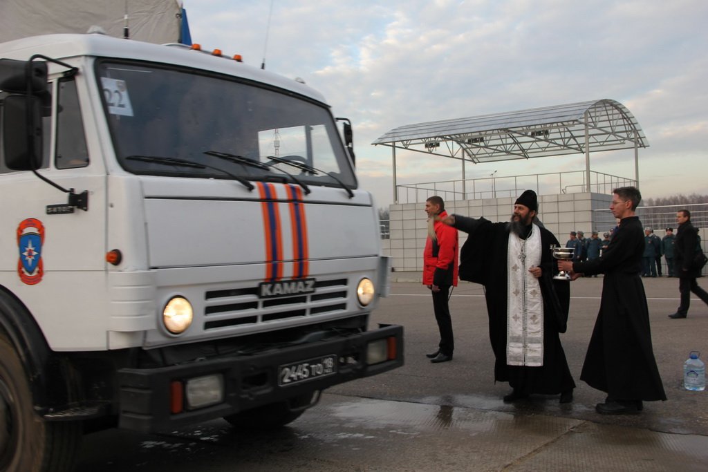 Благословение колонны МЧС с гуманитарной помощью в Ногинске