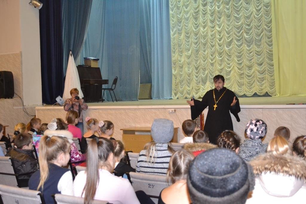 10 декабря в доме культуры поселка Бакшеево клирик Покровского храма села Власово Шатурского церковного округа священник Иоанн Депутатов провел беседу с детьми жителей поселка на тему «Благословенный выбор святого Владимира, Крестителя Руси».