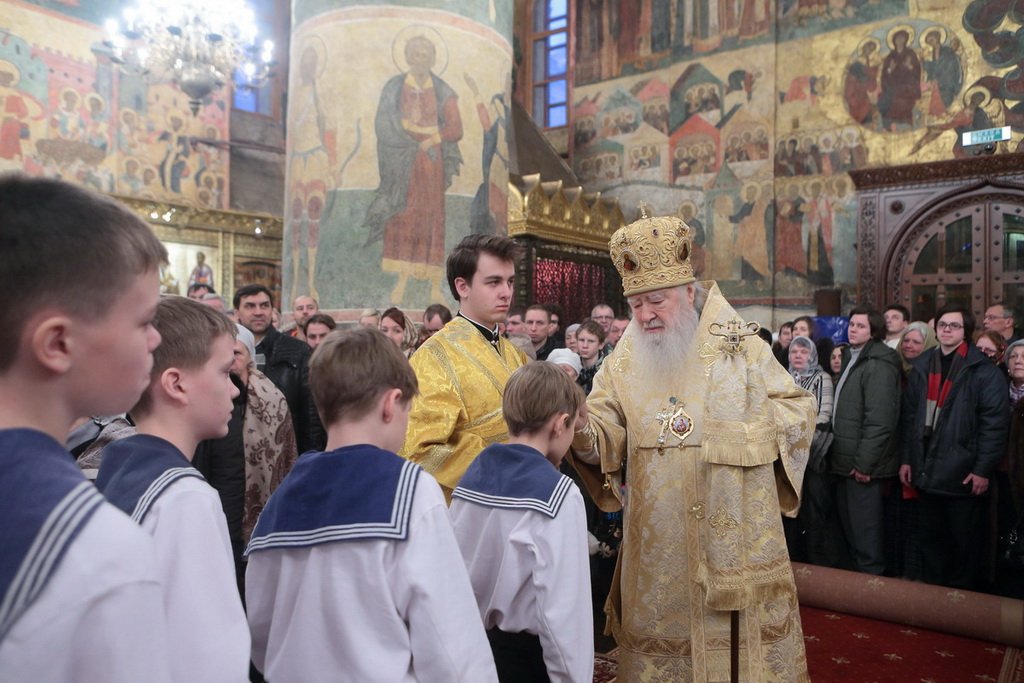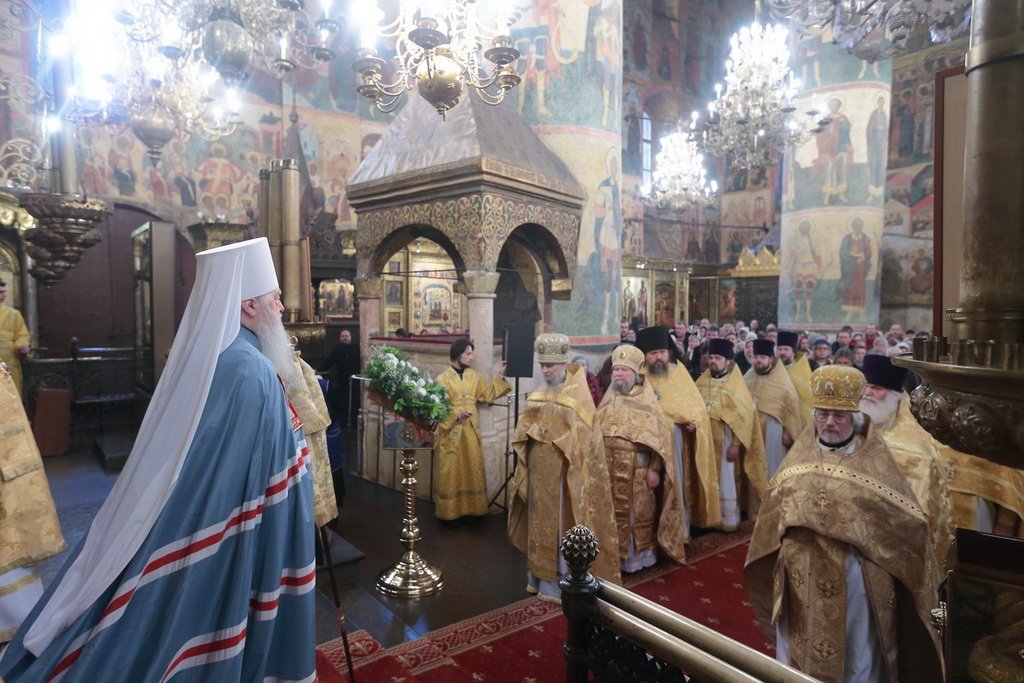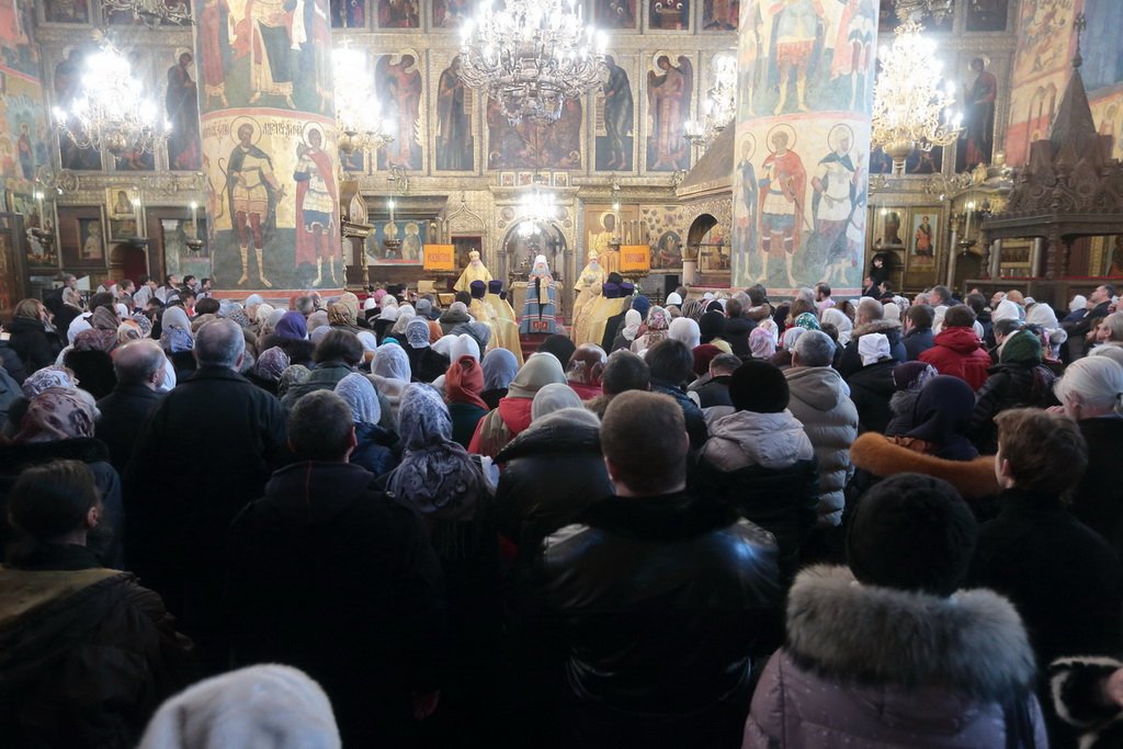 Великая милость Божия, что сегодня, по благословению святейшего Патриарха Кирилла, мы в Патриаршем Кремлевском Успенском соборе в начале наступившего года совершаем совместную молитву. Господь заповедовал всякое дело начинать с молитвы и для всех нас великое утешение, что у этих могил наших первосвятителей, в намоленном соборе мы начинаем этот наступивший год.