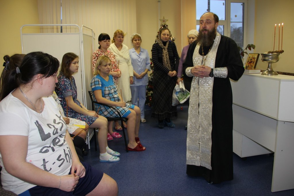 В предрождественские дни и на Святках духовенство и волонтеры посетили с поздравлениями, концертными программами и подарками все окормляемые социальные и медицинские учреждения, войсковые части. Поздравления и подарки получили пациенты всех отделений Ногинской центральной районной больницы.