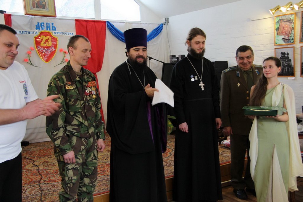 22 февраля, после богослужения в день престольного праздника обретения мощей святителя Тихона, Патриарха Всероссийского, в Иоанно-Богословском храме г. Ликино-Дулево, духовенство и прихожане собрались в культурно-просветительском центре имени святого праведного Иоанна Кронштадтского. Здесь силами прихода был подготовлен конкурс, посвященный Дню защитника Отечества «А ну-ка, парни», в котором приняли участие ребята из воскресной школы Иоанно-Богословского храма г. Ликино-Дулево и ученики Ликино-Дулевской гимназии. После праздника участники и члены жюри получили подарки, которые вручил настоятель храма благочинный церквей Ликино-Дулевского округа священник Антоний Рыжаков.