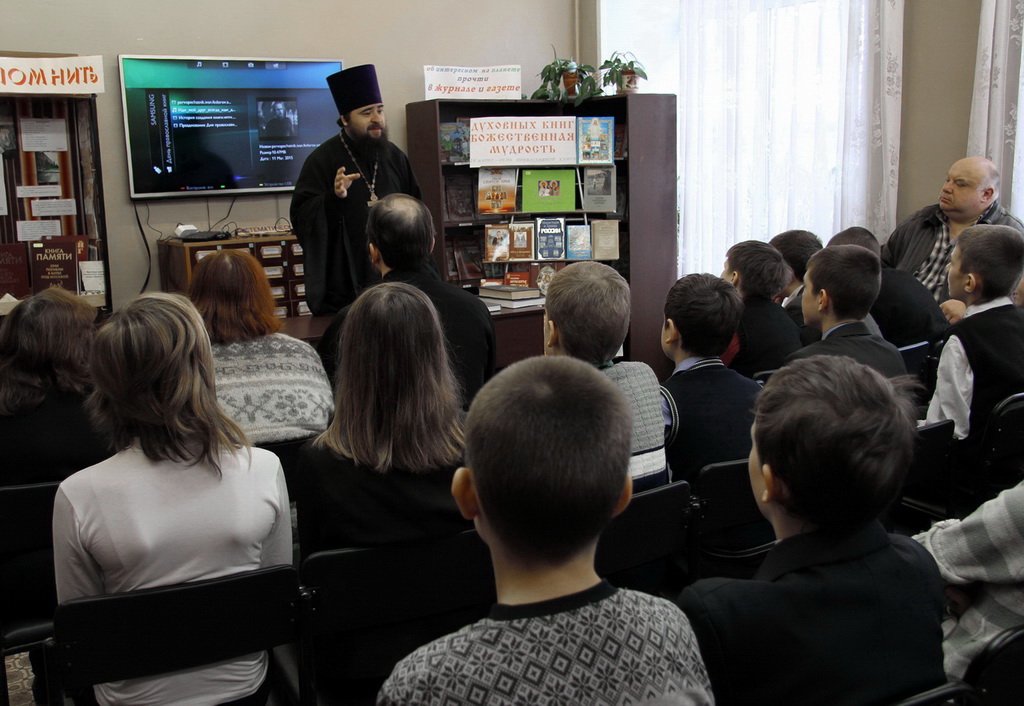 12 марта в Ликино-Дулевской центральной районной детской библиотеке состоялось празднование Дня православной книги. Перед учащимися Ликино-Дулевской школы № 4 выступил благочинный церквей Ликино-Дулевского округа священник Антоний Рыжаков. На встречу отец Антоний принес книгу «Апостол» и рассказал ребятам об истории книгопечатания и значения книги в жизни человека. Также присутствующим был продемонстрирован фрагмент фильма о первопечатнике Иване Федорове. На встрече выступил также катехизатор Иоанно-Богословского храма г. Ликино-Дулево С. В. Крылов. На память о встрече директор библиотеки Л. В. Брехунцова преподнесла отцу Антонию издание «Иконописная школа в Троице-Сергиевой лавре», а священник подарил библиотеке книгу «Ангел и небесный человек» о преподобном Сергии Радонежском.