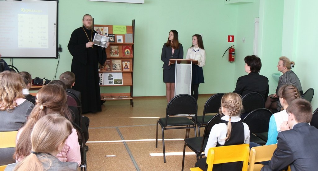 17 марта преподаватель воскресной школы Казанского храма г. Павловского Посада В. И. Коцюба провел встречу с шестиклассниками школы № 18, на которой рассказал об истории праздника, значении Священного Писания, о пользе чтения книг духовно-нравственного и интеллектуального содержания. На встрече был представлен стенд с православной литературой для детей.
