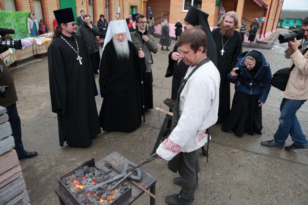 После богослужения настоятель провел владыку на территорию Детского корпуса и представил все стороны деятельности прихода: Детский корпус, конный клуб, кузнецов, школу мастерства «Шмель», храмовую богадельню, тюремное служение. Владыка также осмотрел ход строительства нового здания для детского приюта.