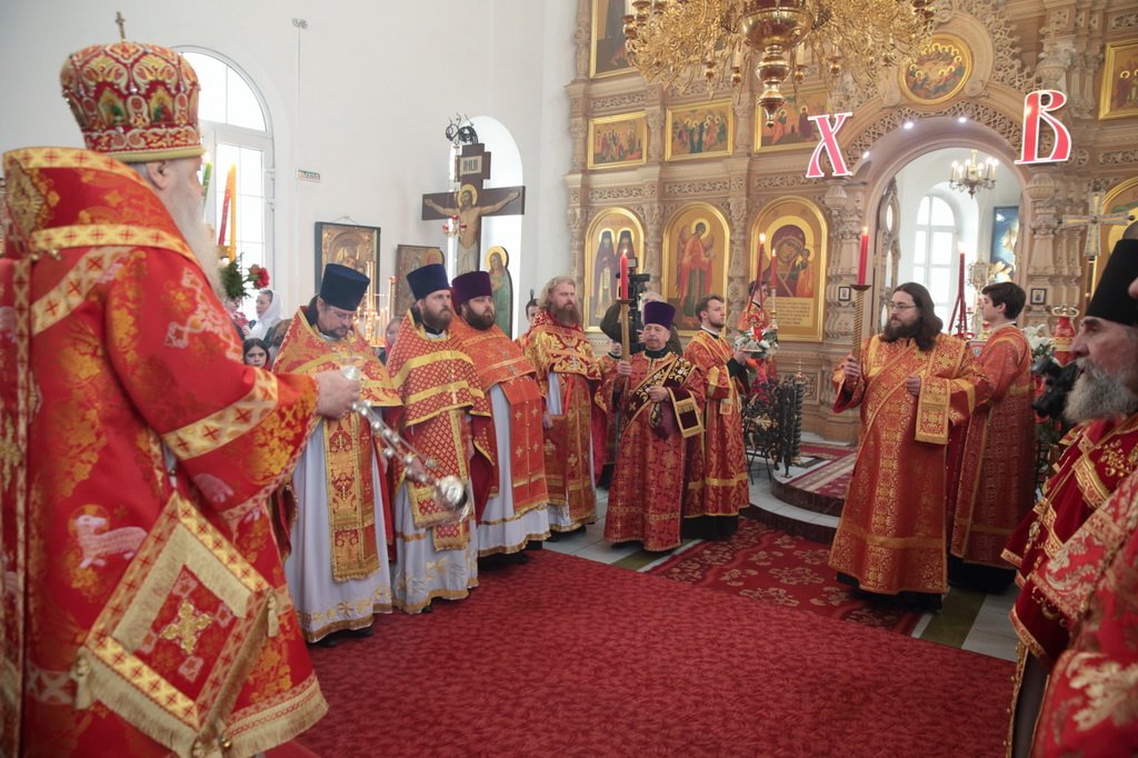 От лица своего прихода и, наверное, даже дерзну сказать, от лица всего благочиния мы рады сегодня приветствовать Вас на нашей земле. Это чудо, что Вы сегодня избрали для прославления Воскресшего Господа именно этот Бывалинский скромный деревенский приход, хотя Вас, безусловно, ждет вся епархия. Мы понимаем, какую ответственность это на нас возлагает, и старались оправдать это доверие. Сегодня многие заново ощутили радость пасхального богослужения, потому как не все бывают в пасхальную ночь бодры, веселы и воспринимают все полностью. Сегодняшняя служба, возглавляемая Вами, конечно, заполнила все уголки каждого сердца всех присутствующих здесь. Сегодня особенно хочется процитировать слова текста Вашего послания, в котором Вы вспомнили священномученика Иоанна Восторгова и сказали, что где Церковь — там мир, покой и радость. И для нас это на самом деле так. Каждый, кто сегодня сюда пришел, пройдя через