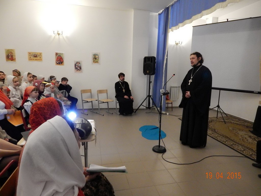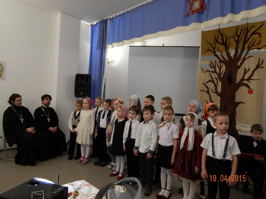 19 апреля в актовом зале воскресной школы Троицкого храма прошел утренник. По окончании праздничной постановки учащиеся и гости переместились на площадь перед храмом, где приняли участие в различных конкурсах и викторинах.