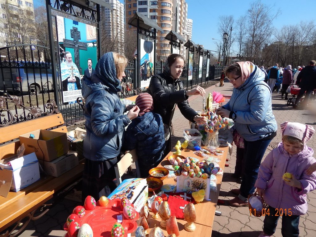 11 апреля на территории Троицкого храма г. Реутова состоялась благотворительная ярмарка, на которой были представлены поделки, выполненные воспитанниками воскресной школы.
