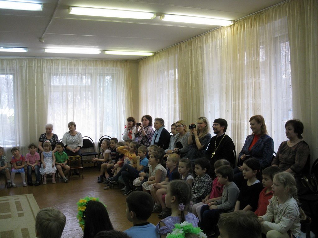 17 апреля в детском саду № 4 «Ивушка» состоялось праздничное представление, на котором присутствовал клирик Троицкого храма священник Михаил Конюхов.