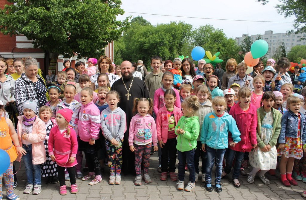 1 июня в Богородицерождественском соборе г. Орехово-Зуево прошел праздник, который посетили координатор работы благочиния с образовательными учреждениями Н. В. Фомичева, социальный работник прихода Н. Н. Лебедева, руководитель студии «Православная мастерская» О. Б. Никитина. В проведении игр и конкурсов приняли участие волонтеры центра волонтерского движения «Социальная инициатива» и аниматоры студии праздника «День радости». На празднике присутствовали воспитанники детского сада № 28, дети из центра социально-психологической помощи и поддержки «Истоки», многодетные и малообеспеченные семьи центра социальной защиты населения г. Орехово-Зуево, жители города. Перед собравшимися выступил благочинный Орехово-Зуевского округа протоиерей Андрей Коробков.