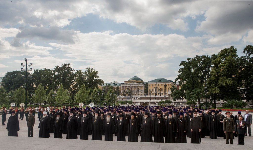 После возложения цветов и исполнения военным оркестром Гимна России духовенство возгласило «Вечную память» павшим в годы Великой Отечественной войны.