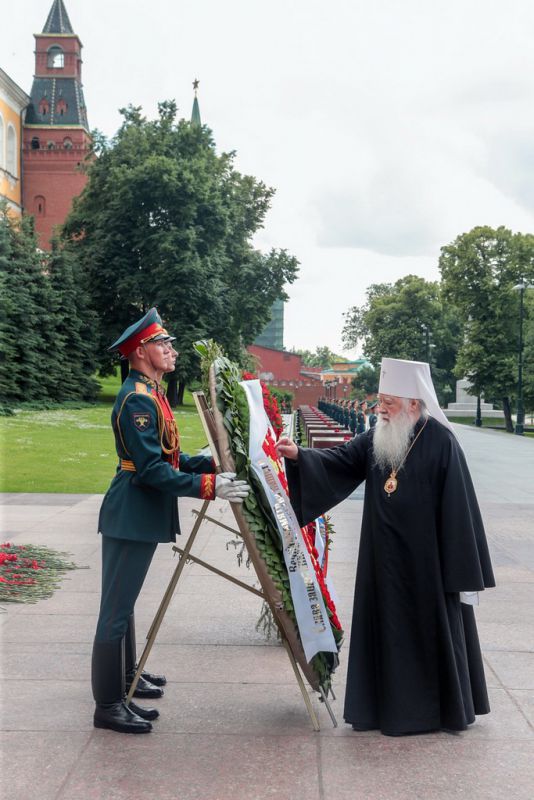 22 июня, в День памяти и скорби, по благословению Святейшего Патриарха Кирилла, митрополит Ювеналий возложил цветы к могиле Неизвестного солдата у Кремлевской стены.